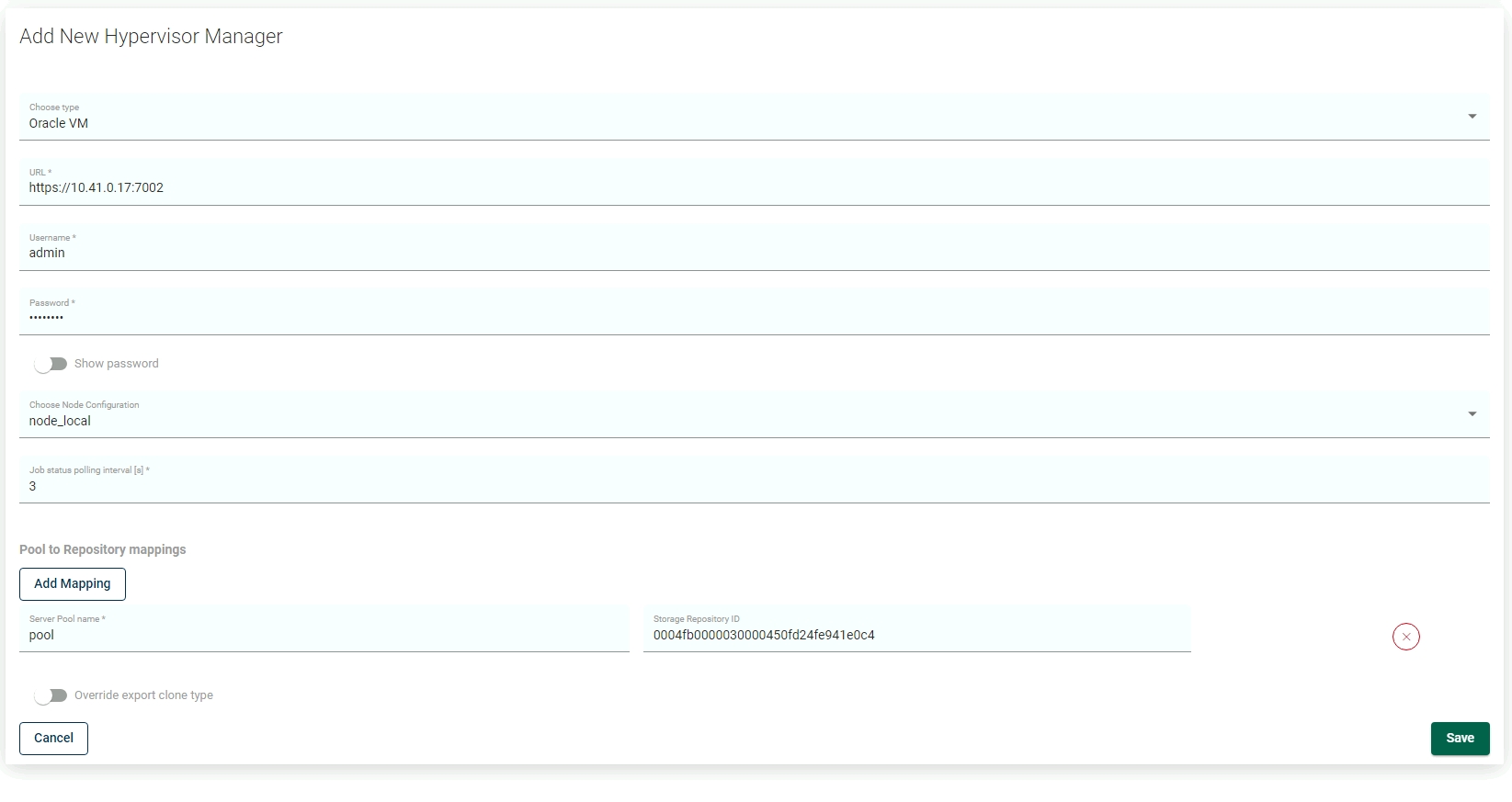 Add the OVM Hypervisor Manager to Storware Backup & Recovery