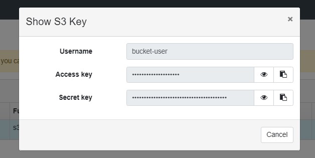 The access key and secret key will be needed to create a backup destination in Storware Backup & Recovery.