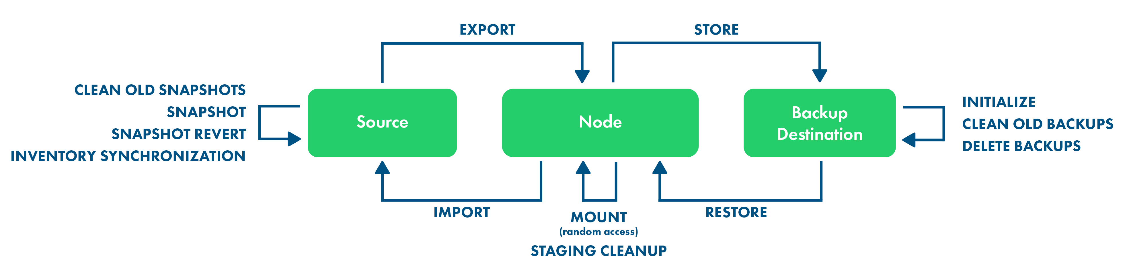 * **Initialize** - this workflow initializes the backup destination - more precisely, stores simple metadata in the file system backup destinations so that the node can be sure that the mount point holds the data of the appropriate backup destination. It is invoked only once per backup destination.