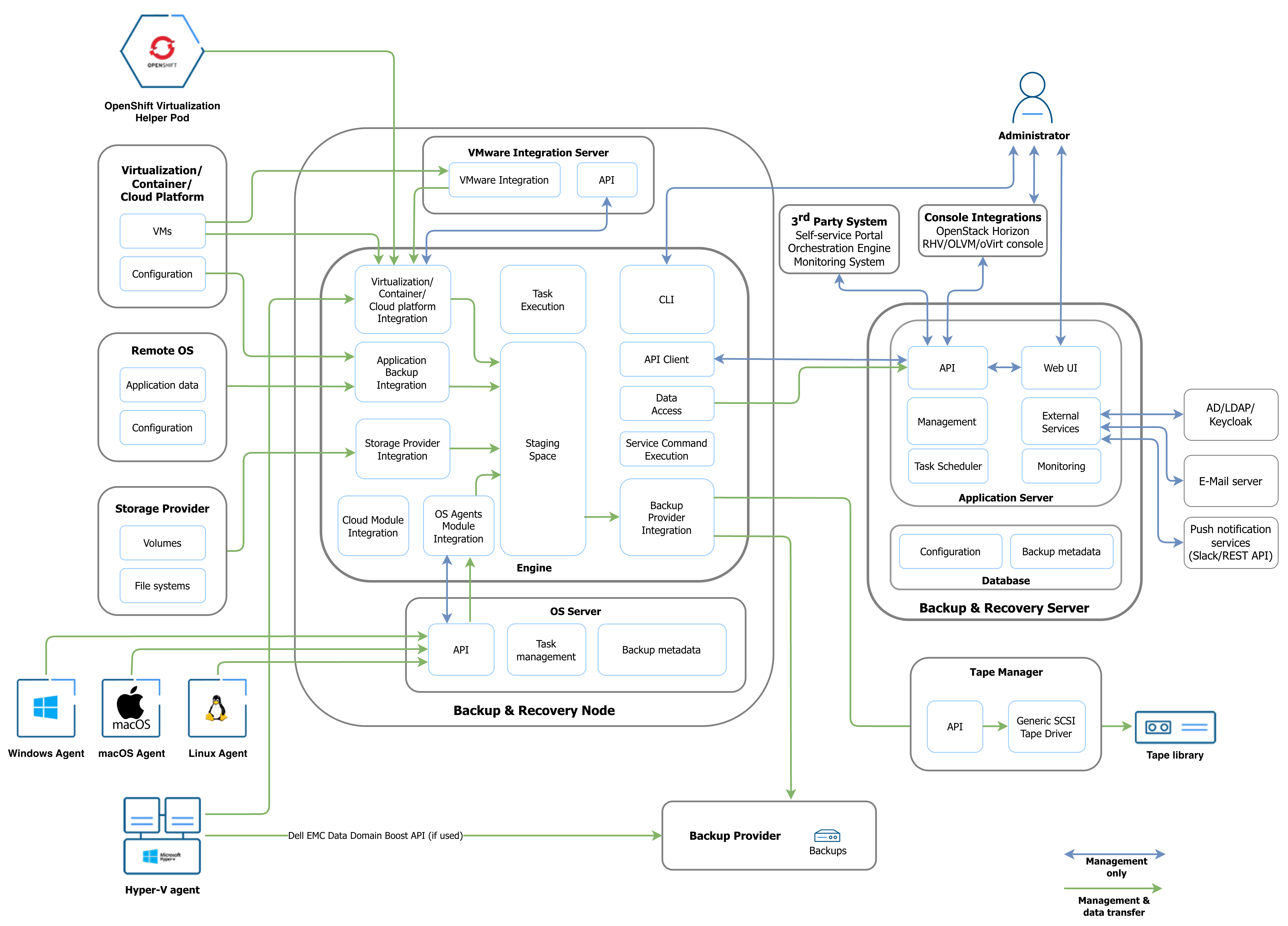Storware Backup and Recovery is composed of several components.